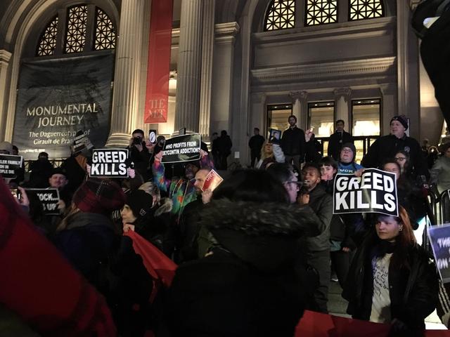 Pain held demonstrations at the Guggenheim and the Met over the weekend