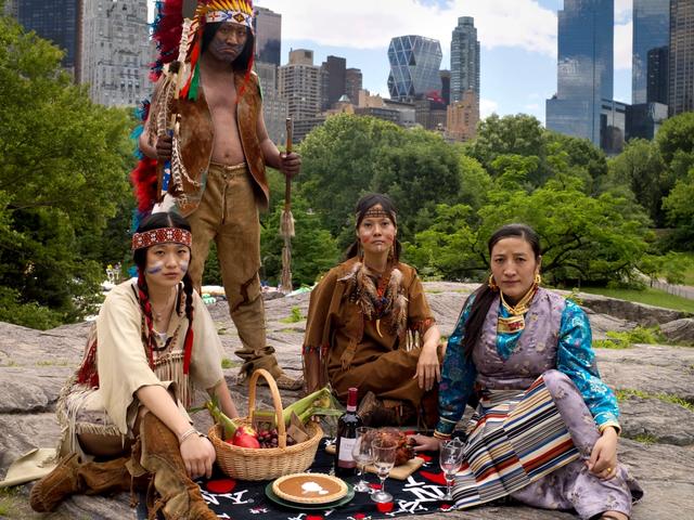 The work by the Taiwanese artist Ching-Yao Chen features him and three women wearing feathers, buckskin and body paint