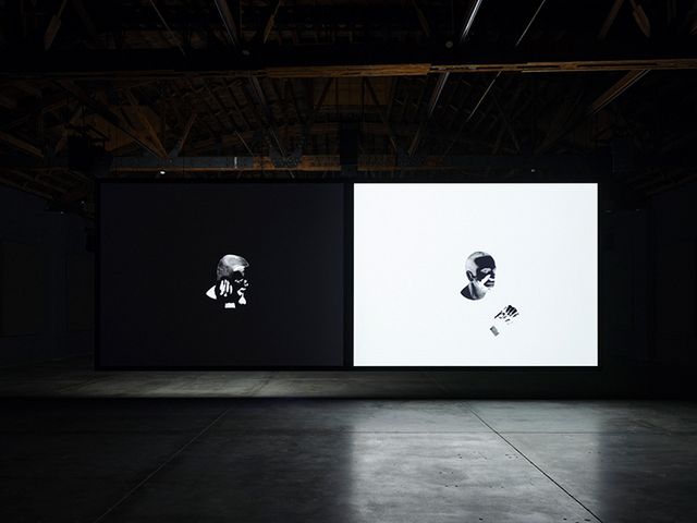 Works in the artist’s show at the New York institution include a video installation in which he narrates a story of racially motivated violence told by his father against images of the actor Al Jonson in blackface