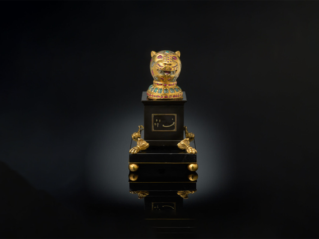 The finial, valued at £1.5m, is one of eight golden heads that adorned the throne of the so-called Tiger of Mysore, which was broken up by British East India Company forces after his defeat in 1799