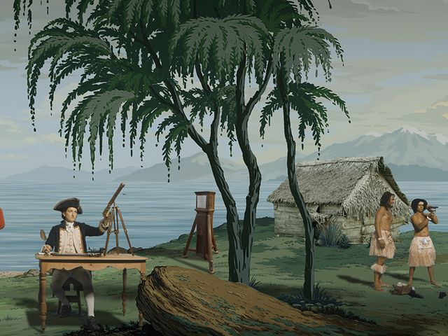 The massive work, shown at the 2017 Venice Biennale, re-interprets 19th-century wallpaper depicting native Pacific peoples
