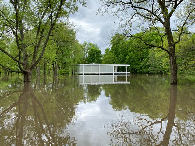 Flooding threatens Mies van der Rohe’s minimalist Farnsworth House in Illinois