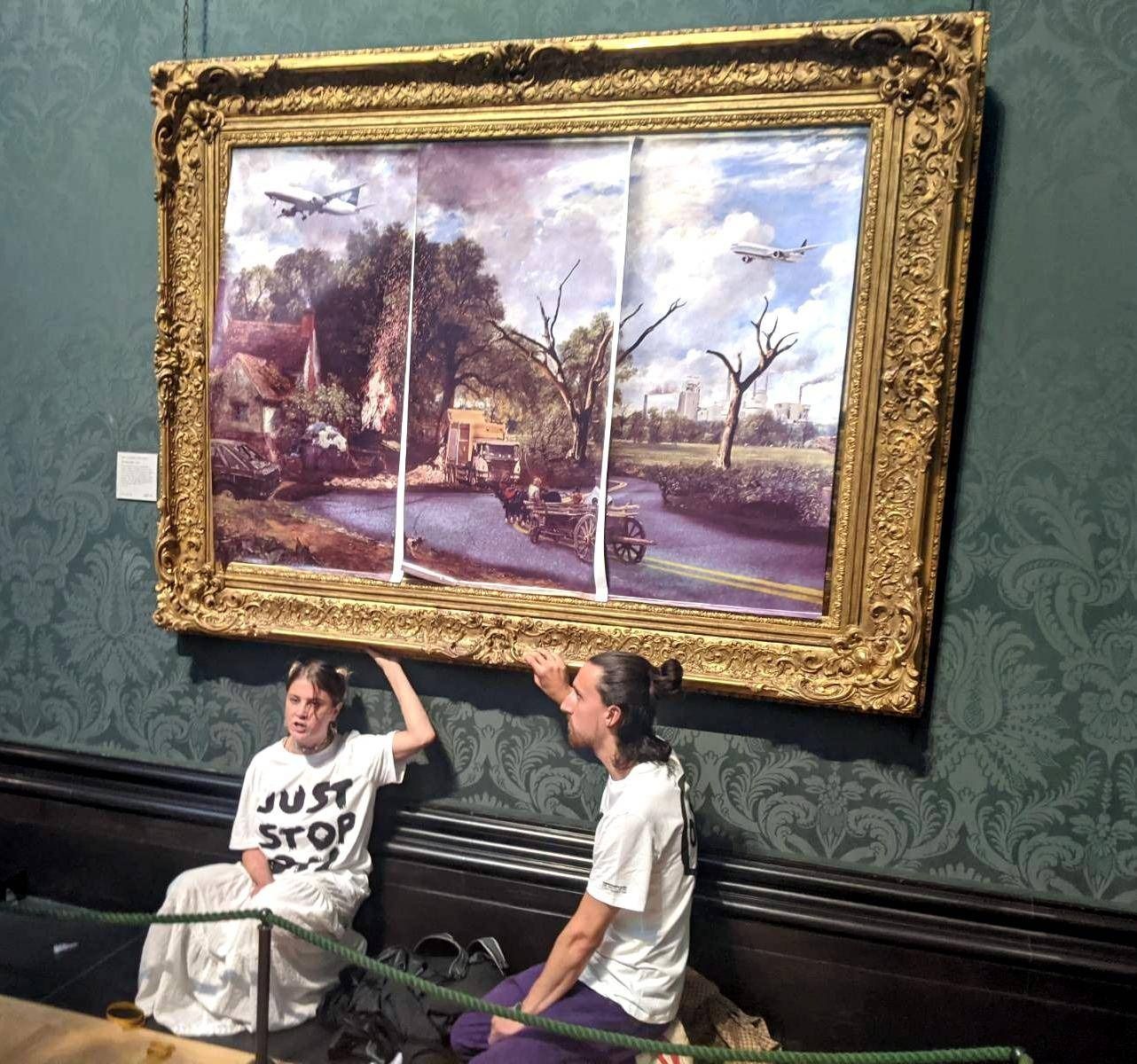 Constable painting rehung at National Gallery after protestors glue themselves to frame