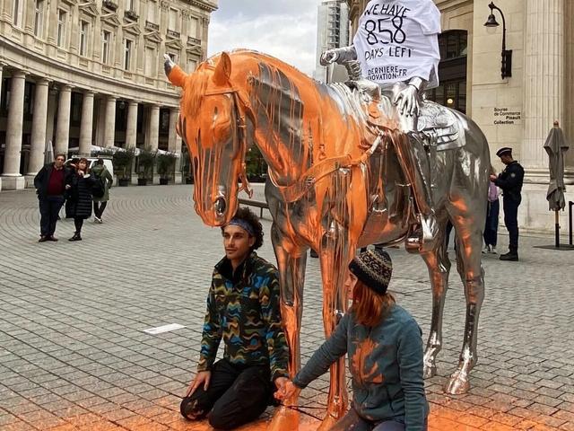 Demonstrators poured orange paint over the US artist Charles Ray's Horse and Rider