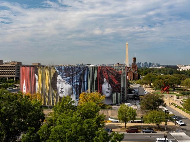 As the Washington, DC institution begins a renovation project in September, a four-storey-high work will adorn its scaffolding