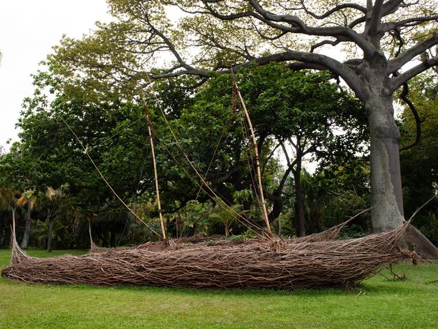 The massive work, shown at the 2017 Venice Biennale, re-interprets 19th-century wallpaper depicting native Pacific peoples
