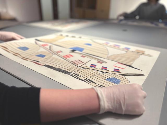 The complex machine, developed in collaboration with Factum Arte, processes thousands of drawings from the Cape Dorset collection