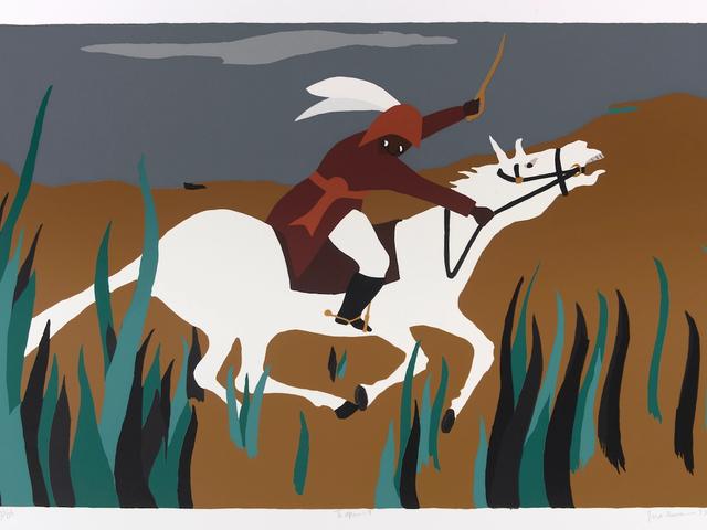 The screenprints are an abridged version of the artist’s 41-panel tempera series devoted to the Haitian revolutionary Toussaint L’Ouverture