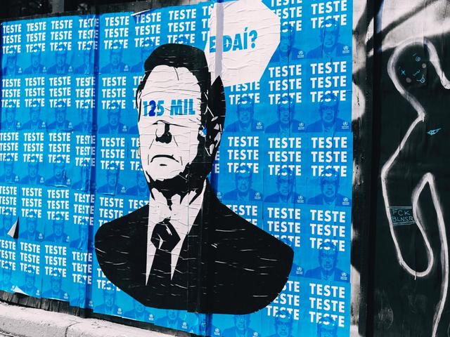 Julio Villani's banners symbolise his “ongoing determination, revolt and despair” at the Brazilian leader's handling of the coronavirus crisis