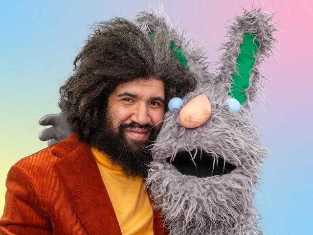 The main film in Musson's Fabric Workshop and Museum exhibition explains art to a cynical puppet, with inspiration from classic PBS children’s programmes and Joseph Beuys