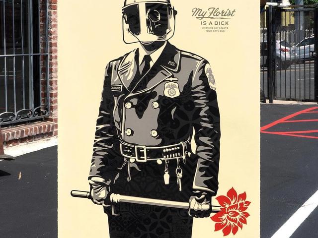 The former chief curator of the Mesa Contemporary Arts Museum is suing the municipality for allegedly ordering the removal of a print from a Shepard Fairey exhibition