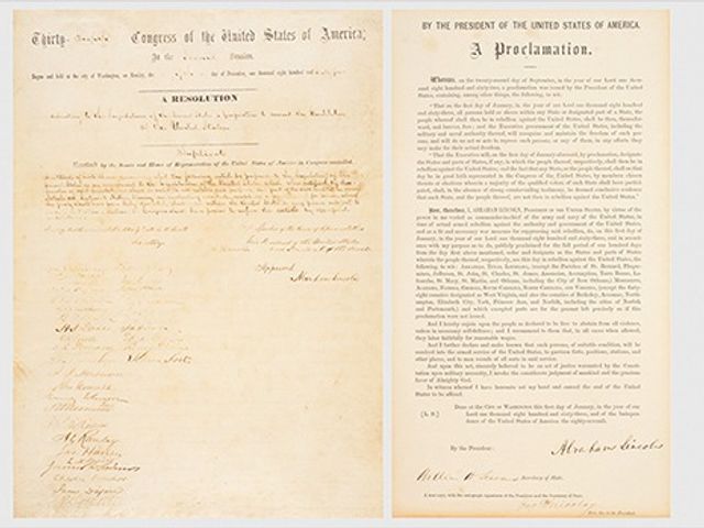 Copies of the Emancipation Proclamation and the Thirteenth Amendment will go to auction