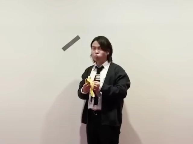 The student, who was visiting a major Cattelan exhibition at the Leeum Museum of Art in Seoul, taped the empty banana peel back to the wall