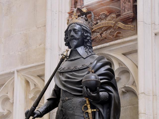 The sculpture was famously attacked by Parliamentarians shortly after the outbreak of the English Civil War