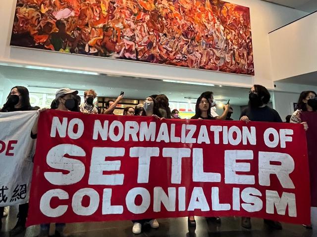 Demonstrators took over the lobby and exterior of the museum on Friday afternoon, calling for transparency and divestment regarding financial ties to Israel