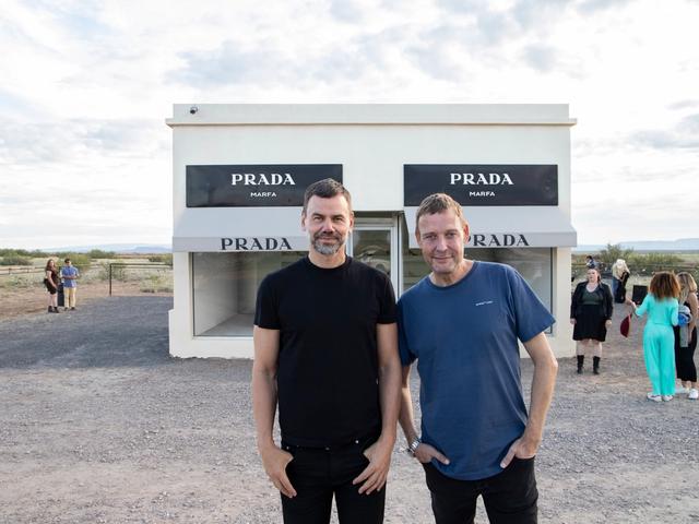 The duo recently visited their Prada Marfa installation for the first time since the work’s unveiling in 2005—and we joined them on the road trip
