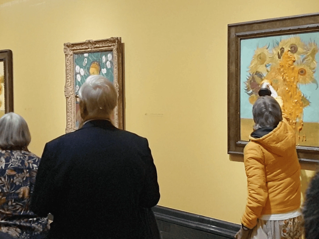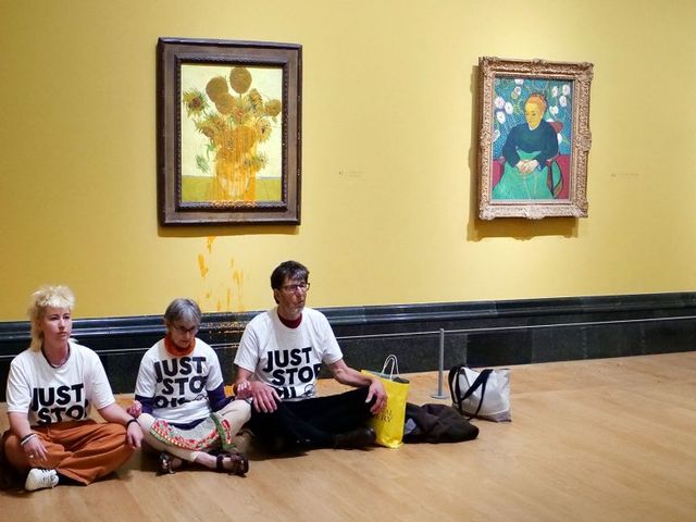 Three arrested after Just Stop Oil protestors throw soup over Van Gogh's Sunflowers—again