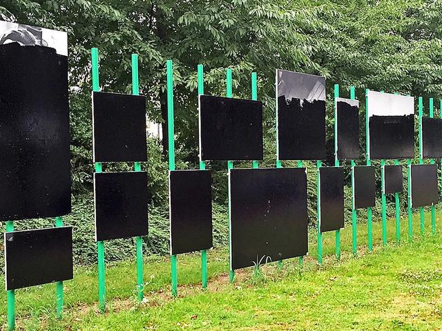 Open-air display of photographs covered in black paint in "politically motivated" attack