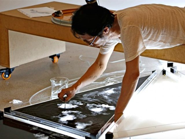 Brooklyn-based artist Mika Tajima work looks like a hot tub with plumes of coloured vapour that change hues based on the fluctuating price of gold