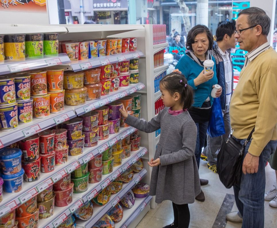 Xu Zhen has recreated a Chinese mini-mart, but the packages have been emptied of their products