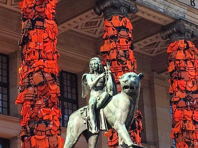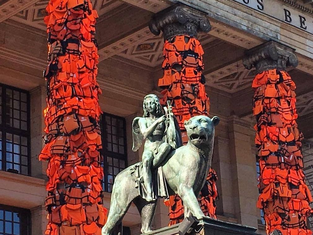 Ai Weiwei wraps Berlin landmark in lifejackets in memory of drowned refugees