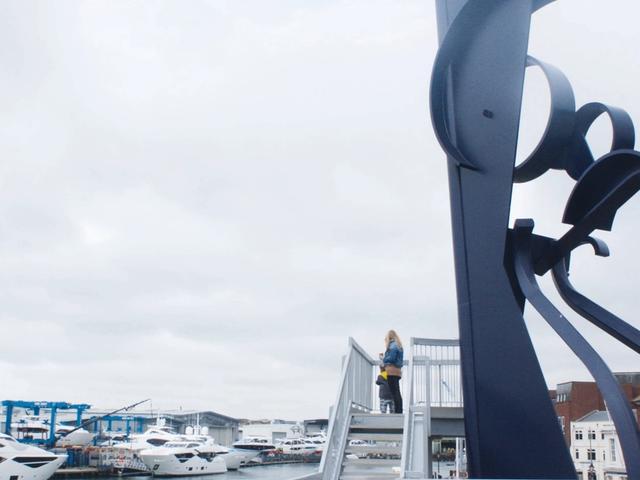 Sea Music (1991) on Dorset's Poole Quay refreshed after 25 years' exposure to salty sea air and detritus from barges being loaded