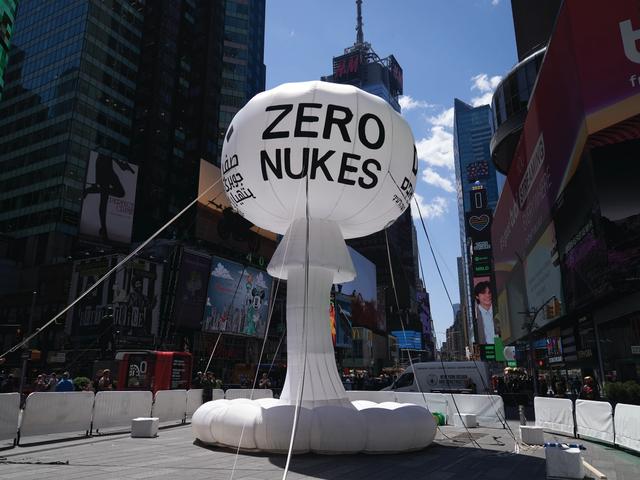 A mushroom cloud rises over Times Square in latest iteration of anti-nukes art project