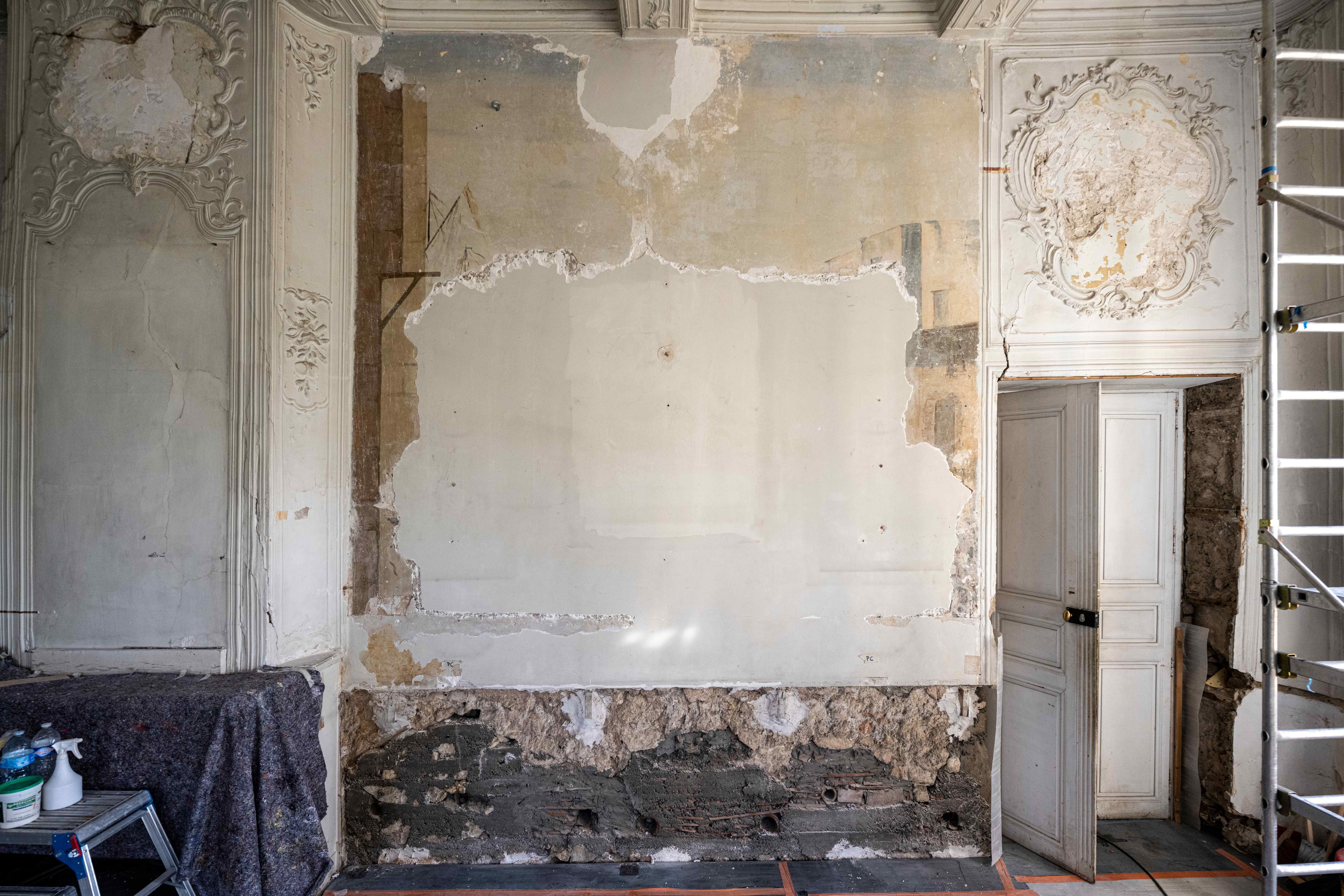 Fragments of a mural were found under wallpaper and plaster at Bastide du Jas de Bouffan in Aix-en-Provence, France