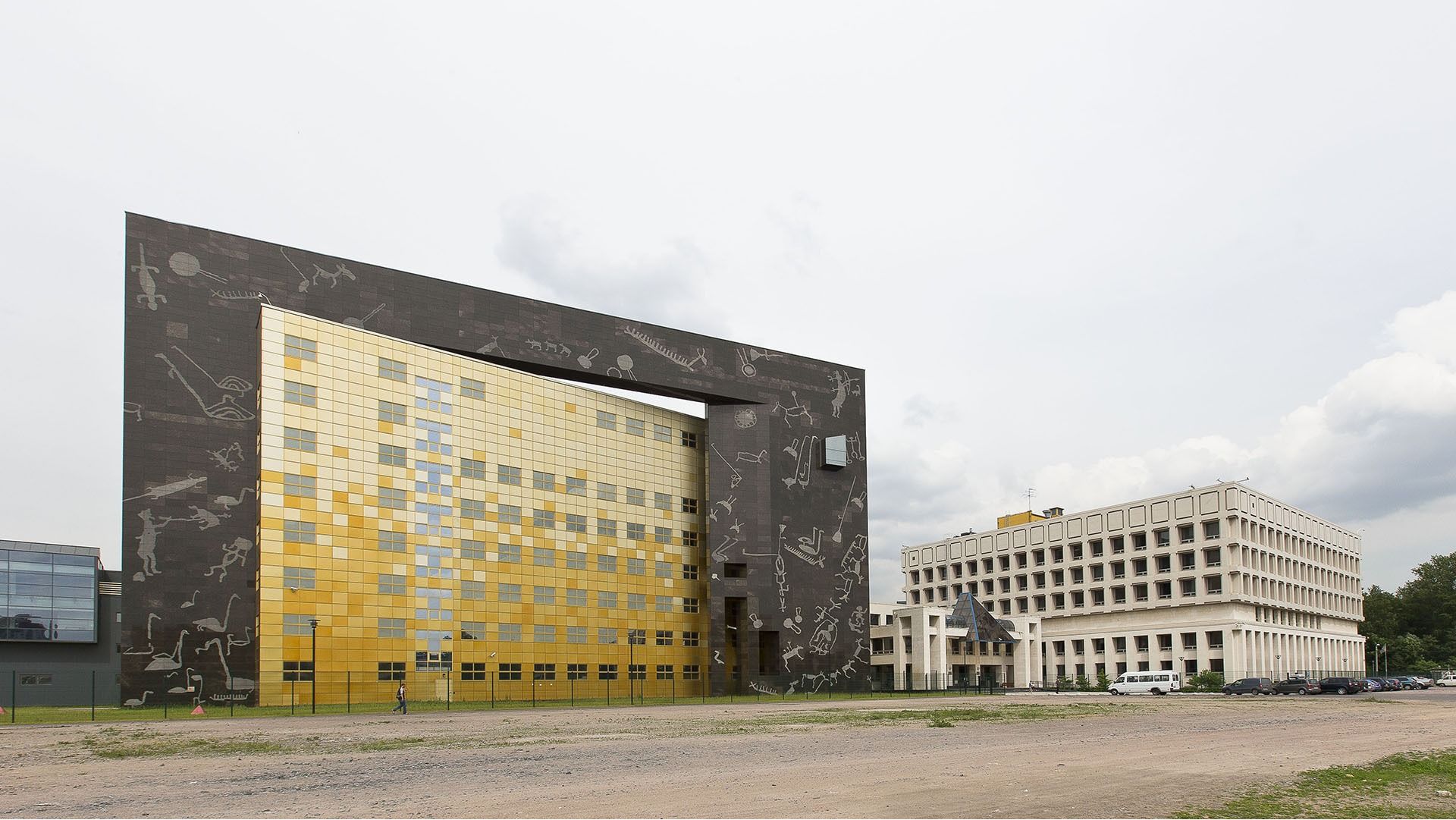 Video shows attackers beating a gallery guard and tearing posters, and walls spray-painted with graffiti stating Mouthpiece of Moscow and Glory to Ukraine