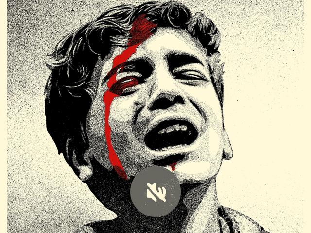 Giant Shepard Fairey work calling for ceasefire in Gaza unfurled at Reina Sofia museum in Madrid