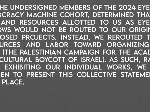 Two former employees of Eyebeam, an art and technology non-profit in Brooklyn, believe they were fired for supporting a call to endorse the Palestinian Campaign for the Academic and Cultural Boycott of Israel, a claim the organisation's leader says is a "misunderstanding"