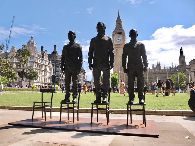 Sculpture of whistleblowers Julian Assange, Chelsea Manning and Edward Snowden makes appearance in UK's Parliament Square