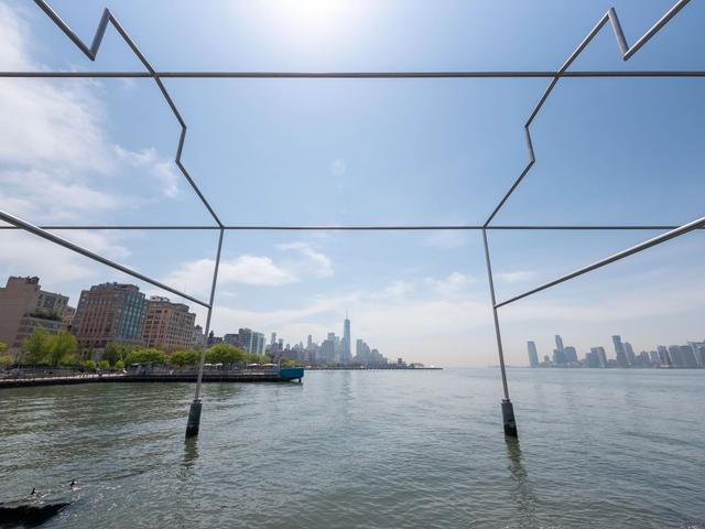 The steel frame structure, which recreates the outline of a former warehouse on the Hudson River, is now a permanent fixture on the shoreline