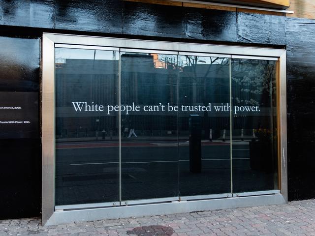 The text-based pieces, installed on the façade of a New York theatre, probe American imperialism and white supremacy