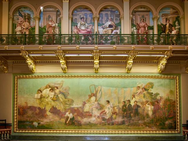 The General Services Administration considers paintings by Bernard Zakheim federal property on loan to the school, it says