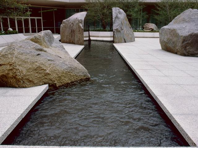 Arrangement of boulders around reflecting pool on National Geographic Society campus is cited as a landscape art masterpiece