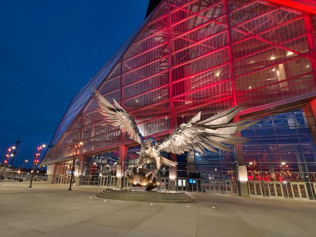 The new Mercedes-Benz Stadium in Atlanta is home to a massive falcon sculpture
