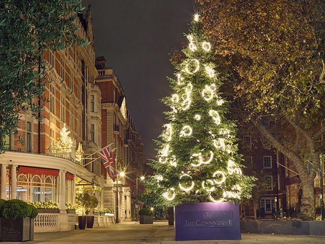 Turner prizewinner’s festive work stands outside the plush hotel, The Connaught