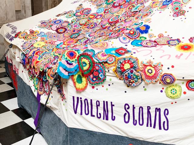 The vast works shown in Northern Italy were made last year at camps in locations including Greece and Rwanda