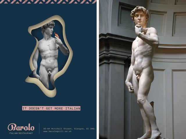 Glasgow's Barolo Restaurant will run posters with the sculpture visible only from the waist up after artwork with the masterpiece in full-view was rejected