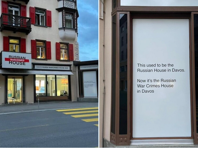 Ukrainian artists stage war crimes exhibition at Russia House in Davos for World Economic Forum