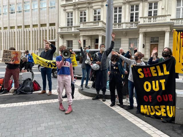 Groups representing scientists, teachers and culture workers held a protest outside the institution on Sunday over its deals with oil company BP and Adani Green Energy