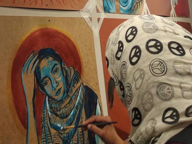 The work, which was painted live at the event, featured Urdu calligraphy and images of women in hijabs
