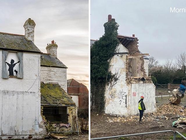Builders accidentally demolish latest Banksy work—and pull the pieces from the rubble