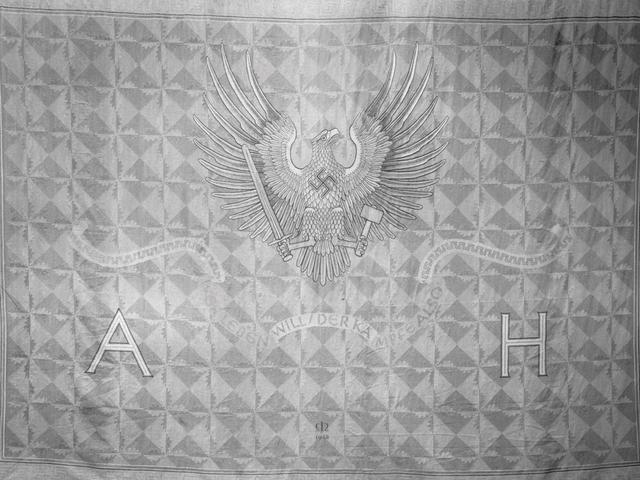 The woven hanging bears a slogan from Hitler's Mein Kampf