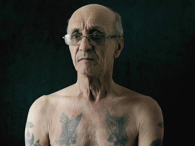Tim Steiner, whose entire back is covered in an ink piece created by Wim Delvoye, will sit in the empty Mona museum until the end of April