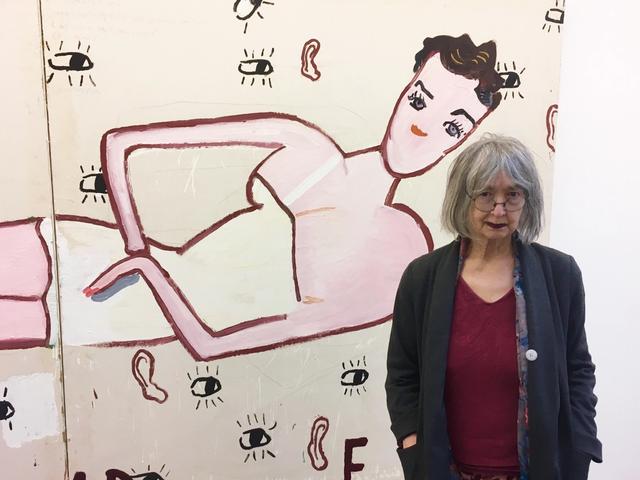 The artist's dog was at her side for all the walk-throughs and many of the interviews