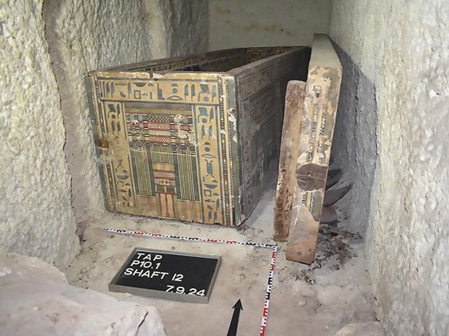 Remains from Middle Kingdom era, along with coffins and funerary objects, were found at the bottom of a hidden shaft south of Cairo