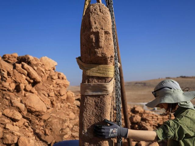 A pillar featuring detailed facial features was unearthed in Karahan Tepe near the Syrian border