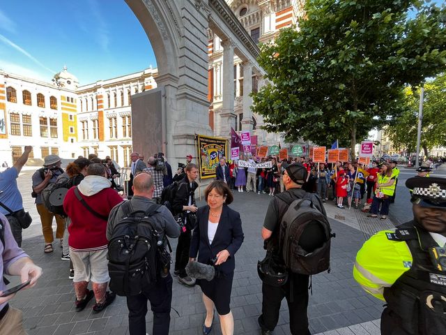 Activist group’s film projection on Victoria and Albert Museum façade raises concerns about trustees’ politics